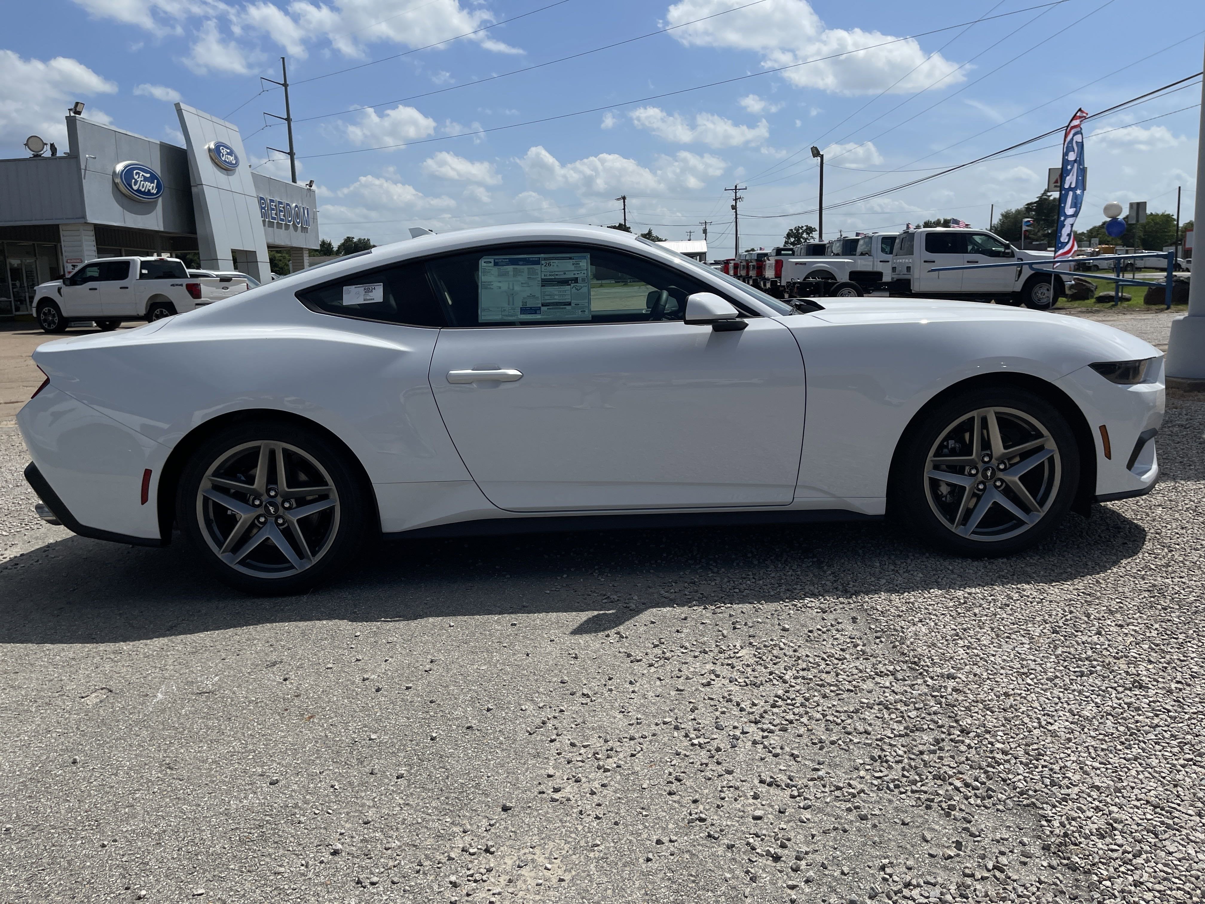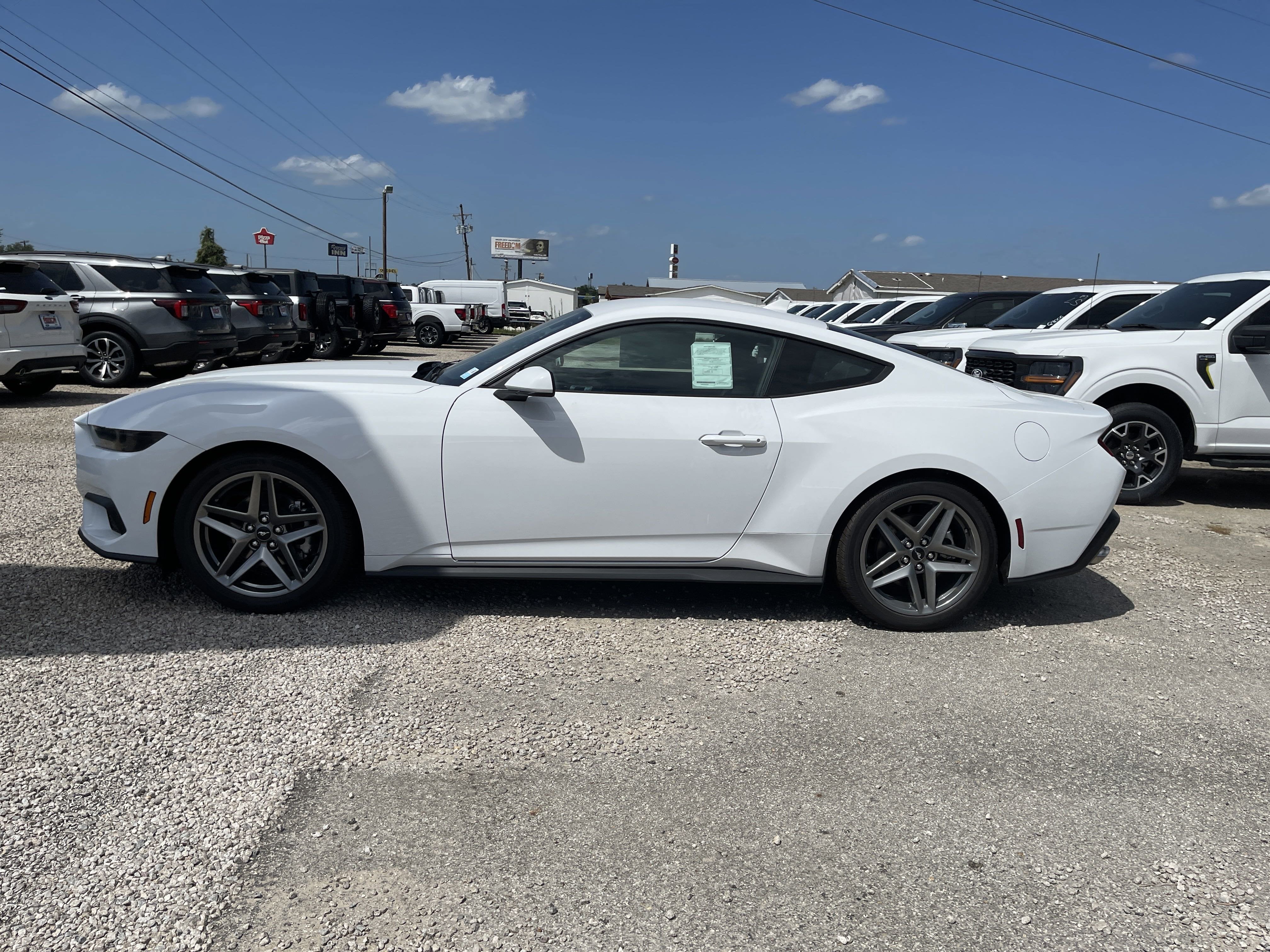 Equipped with Mustang EcoBoost, 2D Coupe, EcoBoost 2.3L I4 GTDi DOHC Turbocharged VCT, 10-Speed Automatic, RWD, Oxford White, Black Onyx Cloth, 4-Wheel Disc Brakes, ABS brakes, Air Conditioning, Alloy wheels, AM/FM Stereo, Auto High-beam Headlights, Automatic temperature control, Brake assist, Bumpers: body-color, Compass, Delay-off headlights, Driver door bin, Driver vanity mirror, Dual front impact airbags, Dual front side impact airbags, Electronic Stability Control, Emergency communication system: 911 Assist, Exterior Parking Camera Rear, Four wheel independent suspension, Front anti-roll bar, Front Bucket Seats, Front Center Armrest, Front dual zone A/C, Front reading lights, Fully automatic headlights, Illuminated entry, Knee airbag, Leather Shift Knob, Low tire pressure warning, Occupant sensing airbag, Outside temperature display, Overhead airbag, Overhead console, Panic alarm, Passenger door bin, Passenger vanity mirror, Power door mirrors, Power steering, Power windows, Radio data system, Rain sensing wipers, Rear anti-roll bar, Rear Parking Sensors, Rear window defroster, Remote keyless entry, Speed control, Speed-sensing steering, Speed-Sensitive Wipers, Split folding rear seat, Sport steering wheel, Steering wheel mounted audio controls, SYNC 4, Tachometer, Telescoping steering wheel, Tilt steering wheel, Traction control, Trip computer, Variably intermittent wipers, Voltmeter, Wheels: 18 x 8 Machined-Face Aluminum, and Wheels: 19 x 8.5 Premier Polished Aluminum. Price includes: $2500 - Retail Customer Cash. Exp. 03/31/2026