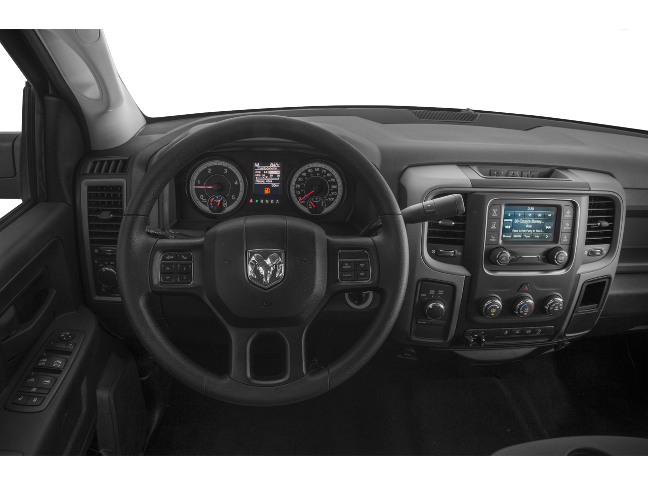 Equipped with Chrome Appearance Group (Bright Front Bumper, Bright Grille, Bright Rear Bumper, and Wheels: 18 x 8.0 Steel Chrome Clad), Popular Equipment Group (1-Yr SiriusXM Radio Service, 40/20/40 Split Bench Seat, Carpet Floor Covering, Cloth 40/20/40 Bench Seat, For More Info, Call 800-643-2112, Front & Rear Floor Mats, Rear Folding Seat, Remote Keyless Entry, and SiriusXM Satellite Radio), Quick Order Package 2FA Tradesman, 17 x 7.5 Steel Styled Wheels, 180 Amp Alternator, 32 Gallon Fuel Tank, 4-Wheel Disc Brakes, 6 Speakers, ABS brakes, Air Conditioning, AM/FM radio, Anti-Spin Differential Rear Axle, Black Exterior Mirrors, Brake assist, Center Hub, Continental Radio Manufacturer, Delay-off headlights, Driver door bin, Dual front impact airbags, Dual front side impact airbags, Electronic Stability Control, Electronically Controlled Throttle, Exterior Mirrors Courtesy Lamps, Exterior Mirrors w/Heating Element, Exterior Mirrors w/Supplemental Signals, Front anti-roll bar, Front Bumper Sight Shields, Front Center Armrest, Fully automatic headlights, Heated door mirrors, Heavy Duty Vinyl 40/20/40 Split Bench Seat, Hemi Badge, Low tire pressure warning, Media Hub (USB, AUX), Next Generation Engine Controller, Occupant sensing airbag, Overhead airbag, Passenger door bin, Power Black Trailer Tow Mirrors, Power door mirrors, Power steering, Power windows, Radio data system, Radio: Uconnect 3.0 AM/FM, Rear seat center armrest, Rear step bumper, Speed control, Tachometer, Tilt steering wheel, Tip Start, Traction control, Trailer Brake Control, Trailer Tow Mirrors, Transmission Oil Cooler, Variably intermittent wipers, and Voltmeter.