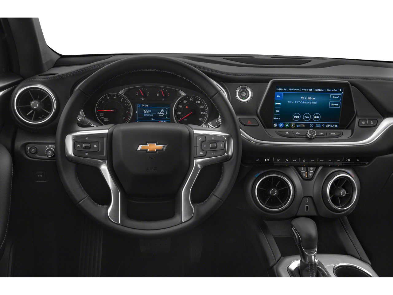 Mechanical reliability is supported by a 150-amp alternator, electronic parking brake, capless fuel fill, and a robust drivetrain. The Blazers structure and systems are engineered for longevity and consistent performance whether used for commuting, weekend travel, or family activities. The available Gloss Black Emblem Kit adds an extra touch of style, enhancing the SUVs already aggressive look.