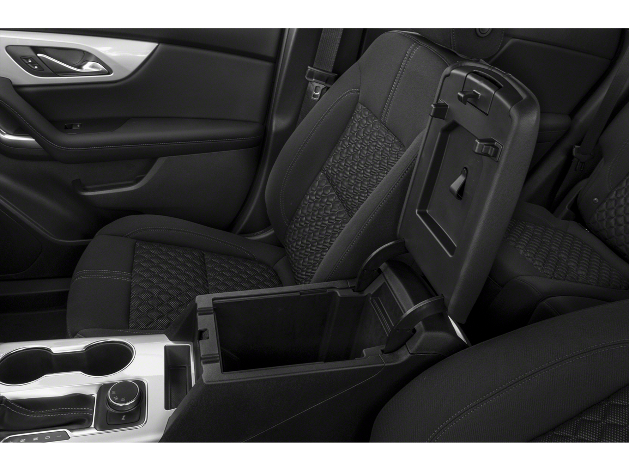 Inside, the Blazer offers a well-designed and driver-focused cabin. It features cloth bucket seats, a leather steering wheel, adjustable steering wheel, power driver seat, lockable electronic glovebox, rear defrost, driver and passenger illuminated vanity mirrors, multi-color 4.2 driver information center, manual day/night rearview mirror, and intuitive control placements. Interior lighting includes map lamps, dome lights, True White backlit switches, spot lighting in the console, and LED-lit USB ports. Rear passengers benefit from adjustable head restraints, umbrella holders, and a comfortable 5-passenger layout with ample legroom.