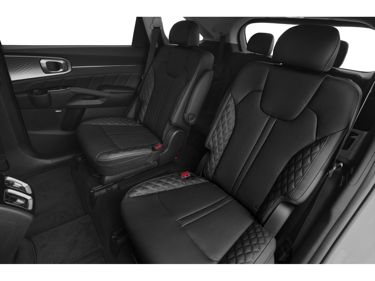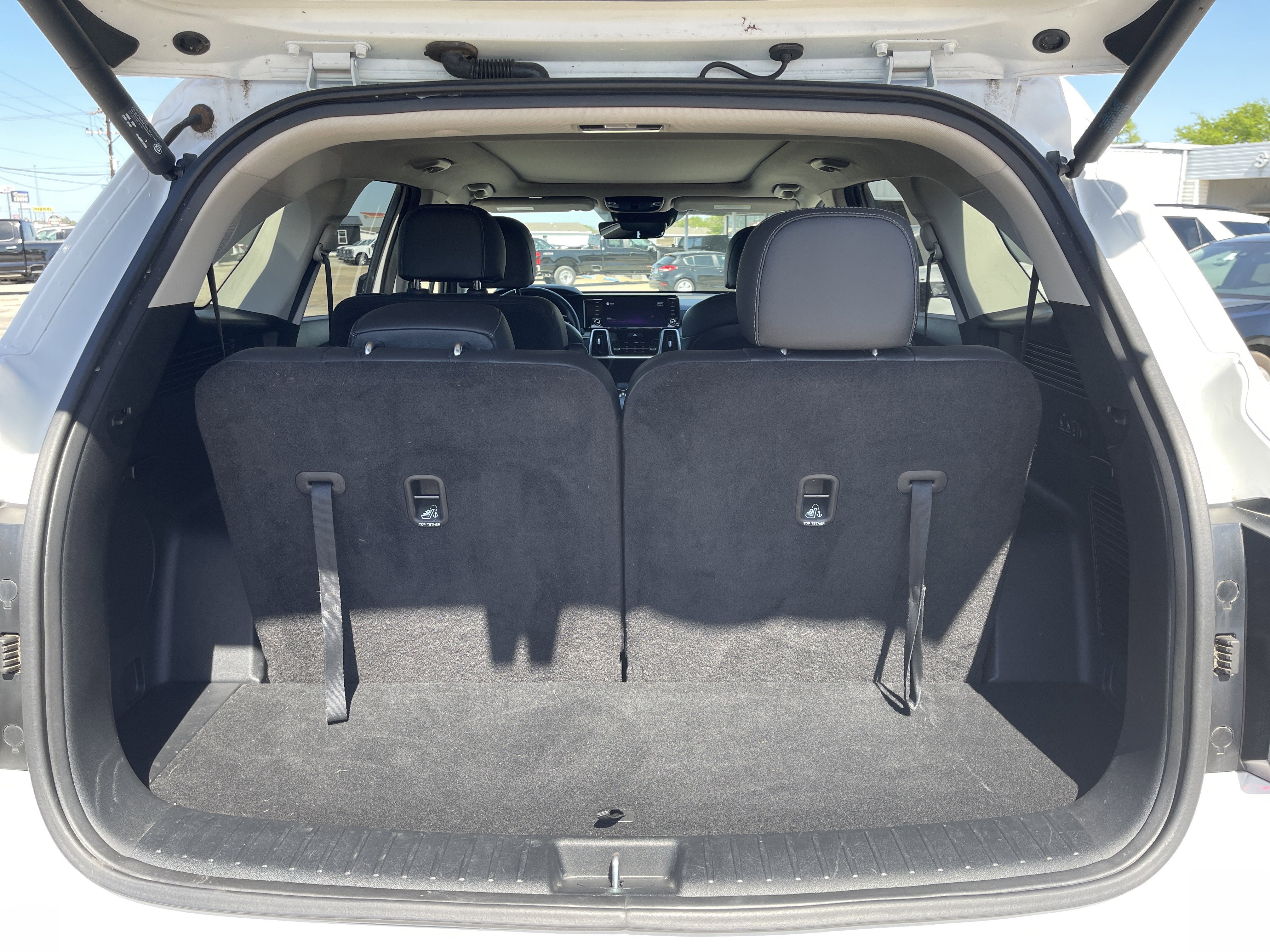 Equipped with 12 Speakers, 3.316 Axle Ratio, 3rd row seats: split-bench, 4-Wheel Disc Brakes, ABS brakes, Air Conditioning, Alloy wheels, AM/FM radio: SiriusXM, Apple CarPlay & Android Auto, Auto High-beam Headlights, Auto-dimming Rear-View mirror, Automatic temperature control, Brake assist, Bumpers: body-color, Cargo Net, Carpeted Floor Mats, Delay-off headlights, Driver door bin, Driver vanity mirror, Dual front impact airbags, Dual front side impact airbags, Electronic Stability Control, Emergency communication system: UVO Link, Four wheel independent suspension, Front anti-roll bar, Front Bucket Seats, Front Center Armrest, Front dual zone A/C, Front fog lights, Front reading lights, Fully automatic headlights, Heated & Ventilated Front Bucket Seats, Heated door mirrors, Heated front seats, Heated rear seats, Heated steering wheel, Illuminated entry, Knee airbag, Leather steering wheel, Low tire pressure warning, Memory seat, Navigation System, Occupant sensing airbag, Outside temperature display, Overhead airbag, Overhead console, Panic alarm, Passenger door bin, Passenger vanity mirror, Perforated Genuine Leather Seat Trim, Power door mirrors, Power driver seat, Power Liftgate, Power moonroof, Power passenger seat, Power steering, Power windows, Radio data system, Radio: AM/FM Bose Premium Audio System, Rear air conditioning, Rear anti-roll bar, Rear reading lights, Rear window defroster, Rear window wiper, Remote keyless entry, Roof rack: rails only, Security system, Smart Key w/ Push Button and Remote Start, Speed control, Speed-sensing steering, Split folding rear seat, Spoiler, Steering wheel mounted audio controls, Tachometer, Telescoping steering wheel, Tilt steering wheel, Traction control, Trip computer, Turn signal indicator mirrors, Variably intermittent wipers, Ventilated front seats, and Wheels: 8.5J x 20 Gloss Black Alloy.