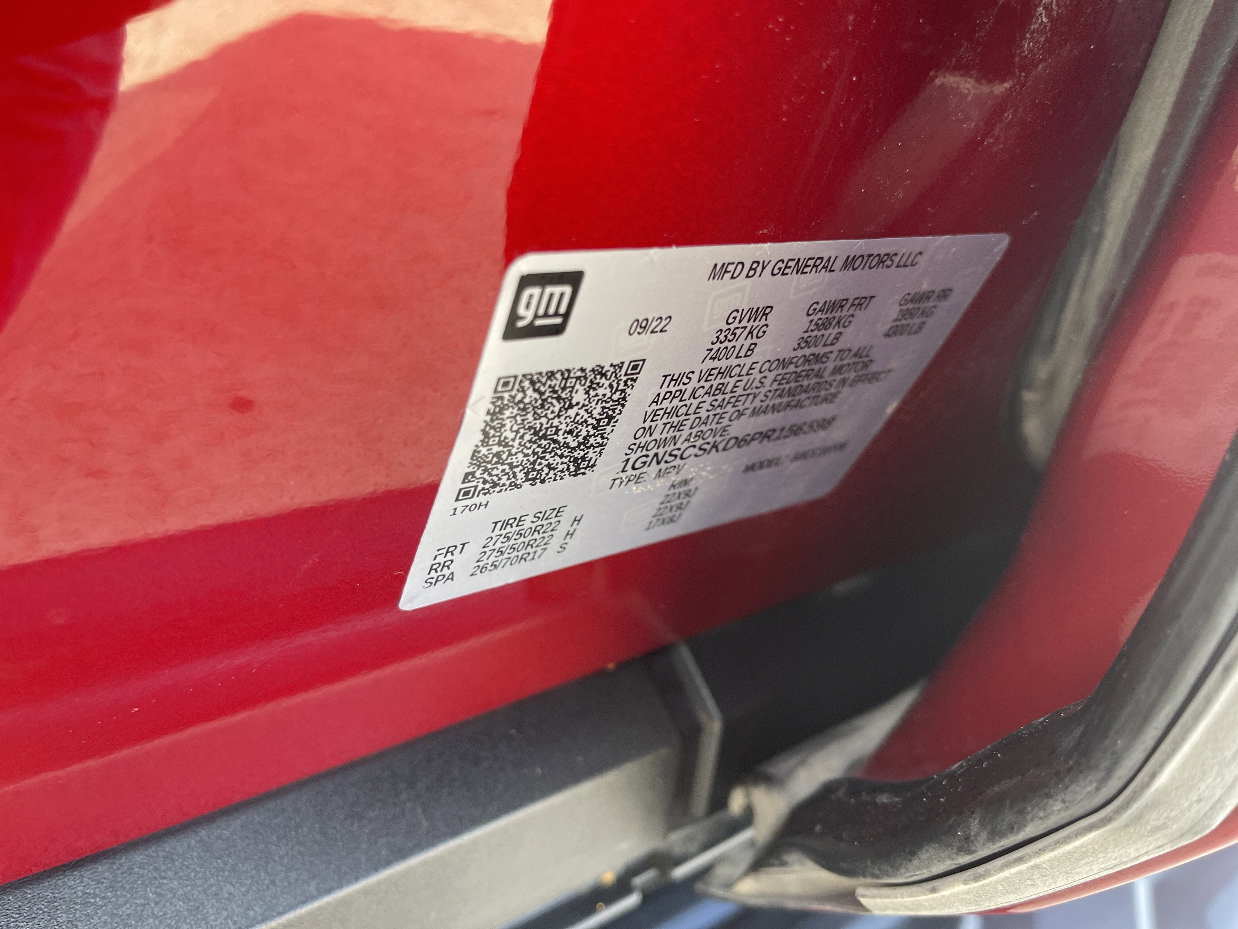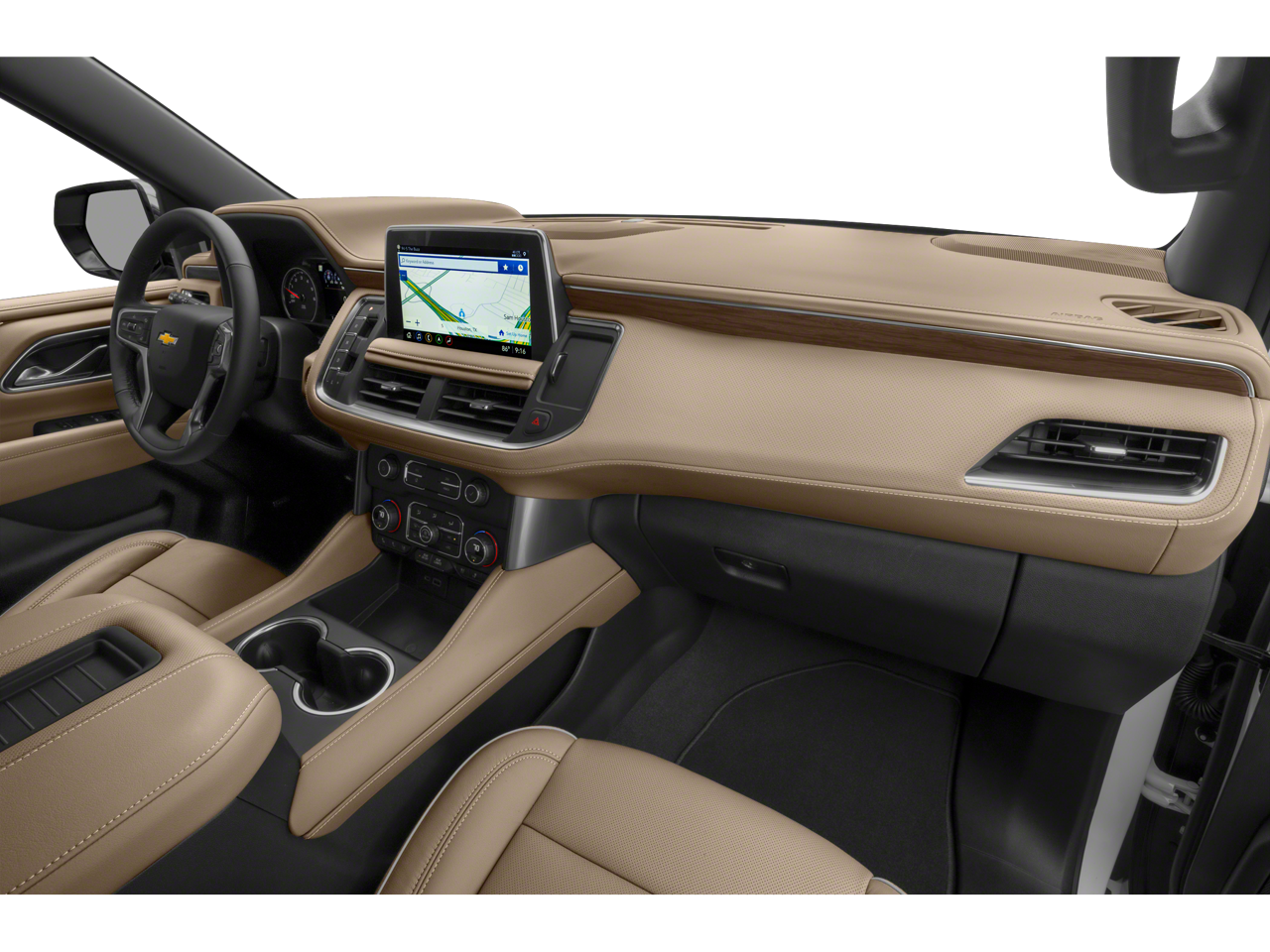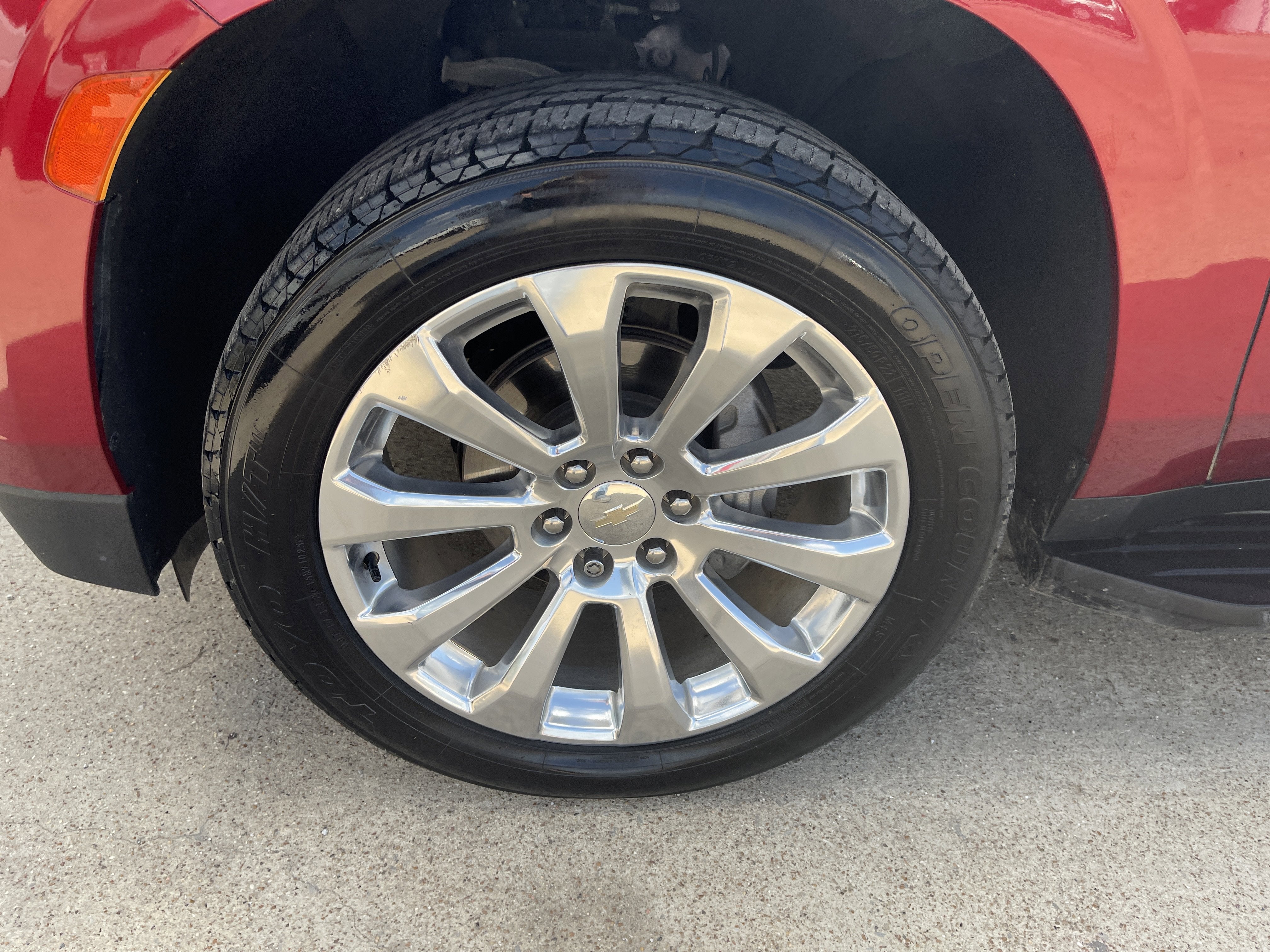 Equipped with License Plate Front Mounting Package, Preferred Equipment Group 1LZ (1st & 2nd Row Color-Keyed Carpeted Floor Mats, 3rd Row 60/40 Power-Folding Split-Bench Seat, Auto-Dimming Inside Rear-View Mirror, Bose 10-Speaker Centerpoint Surround Audio Sys Ft, Bright Front & Rear Door Sill Plates, Chrome Door Handles w/Body-Color Strip, Chrome Mirror Caps, Color-Keyed Carpeting Floor Covering, Driver & Front Outboard Passenger Airbags, Dual Exhaust System, Enhanced Driver Information Center, Floor Console, Hands-Free Rear Power Programmable Liftgate, Heated 2nd Row Outboard Seats, Heated Steering Wheel, Infotainment Display, Lane Change Alert w/Side Blind Zone Alert, LED Daytime Running Lamps, Memory Settings, Outside Heated Power-Adjustable Mirrors, Power Release 2nd Row Bucket Seats, Power Tilt & Telescopic Steering Column, Rear Cross Traffic Alert, Remote Start, Safety Alert Seat, SiriusXM Radio w/360L, Universal Home Remote, Wireless Charging, and Wrapped Steering Wheel), Texas Edition (Set of 4 Wheel Locks (LPO), Texas Edition Badging, and Wheels: 22 x 9 Polished Aluminum (RVA)), 10 Speakers, 20 x 9 Polished Aluminum Wheels, 3.23 Rear Axle Ratio, 3rd row seats: split-bench, 4-Wheel Disc Brakes, ABS brakes, Adaptive suspension, Air Conditioning, Alloy wheels, AM/FM radio: SiriusXM with 360L, Apple CarPlay/Android Auto, Auto High-beam Headlights, Auto-dimming door mirrors, Auto-dimming Rear-View mirror, Auto-leveling suspension, Automatic temperature control, Brake assist, Bumpers: body-color, Compass, Delay-off headlights, Driver door bin, Driver vanity mirror, Dual front impact airbags, Dual front side impact airbags, Dual-Pane Power Panoramic Sunroof, Electronic Stability Control, Emergency communication system: OnStar and Chevrolet connected services capable, Four wheel independent suspension, Front anti-roll bar, Front Bucket Seats, Front Center Armrest, Front dual zone A/C, Front High-Back Reclining Bucket Seats, Front reading lights, Fully automatic headlights, Garage door transmitter, Heated & Ventilated Driver & Front Passenger Seats, Heated door mirrors, Heated Driver & Front Passenger Seats, Heated front seats, Heated rear seats, Heated steering wheel, Illuminated entry, Low tire pressure warning, Magnetic Ride Control Suspension, Memory seat, Navigation System, Not Equipped w/4-Way Driver & Fr Pass Pwr Lumbar, Occupant sensing airbag, Outside temperature display, Overhead airbag, Overhead console, Panic alarm, Passenger door bin, Passenger vanity mirror, Perforated Leather Seat Trim, Power door mirrors, Power driver seat, Power Liftgate, Power passenger seat, Power steering, Power windows, Premium audio system: Chevrolet Infotainment 3 Premium, Radio: Chevrolet Infotainment 3 Premium System, Rain sensing wipers, Rear air conditioning, Rear anti-roll bar, Rear reading lights, Rear window defroster, Rear window wiper, Remote keyless entry, Roof rack: rails only, Security system, Speed control, Speed-sensing steering, Split folding rear seat, Spoiler, Steering wheel memory, Steering wheel mounted audio controls, Tachometer, Telescoping steering wheel, Tilt steering