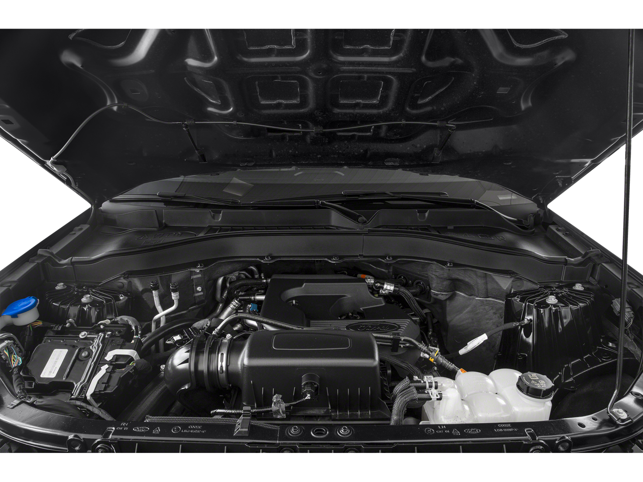 Equipped with Equipment Group 100A, 3.58 Non-Limited-Slip Rear Axle Ratio, 3rd row seats: bench, 4-Wheel Disc Brakes, 4G LTE Wi-Fi Hotspot Credit, 6 Speakers, ABS brakes, Air Conditioning, Alloy wheels, AM/FM radio: SiriusXM, AM/FM Stereo, Auto High-beam Headlights, Automatic temperature control, Brake assist, Bumpers: body-color, Cloth Captain's Chairs, Compass, Delay-off headlights, Driver door bin, Driver vanity mirror, Dual front impact airbags, Dual front side impact airbags, Electronic Stability Control, Emergency communication system: SYNC 3 911 Assist, Exterior Parking Camera Rear, FordPass Connect, Four wheel independent suspension, Front anti-roll bar, Front Bucket Seats, Front Center Armrest, Front dual zone A/C, Front reading lights, Fully automatic headlights, Illuminated entry, Knee airbag, Low tire pressure warning, Occupant sensing airbag, Outside temperature display, Overhead airbag, Overhead console, Panic alarm, Passenger door bin, Passenger vanity mirror, Power door mirrors, Power driver seat, Power Liftgate, Power steering, Power windows, Rear air conditioning, Rear anti-roll bar, Rear Auxiliary Controls Credit, Rear reading lights, Rear window defroster, Rear window wiper, Remote keyless entry, Speed control, Speed-sensing steering, Speed-Sensitive Wipers, Split folding rear seat, Spoiler, Steering wheel mounted audio controls, SYNC 3 Communications & Entertainment System, SYNC 3/Apple CarPlay/Android Auto, Tachometer, Telescoping steering wheel, Tilt steering wheel, Traction control, Trip computer, Variably intermittent wipers, and Wheels: 18 5-Spoke Silver-Painted Aluminum.