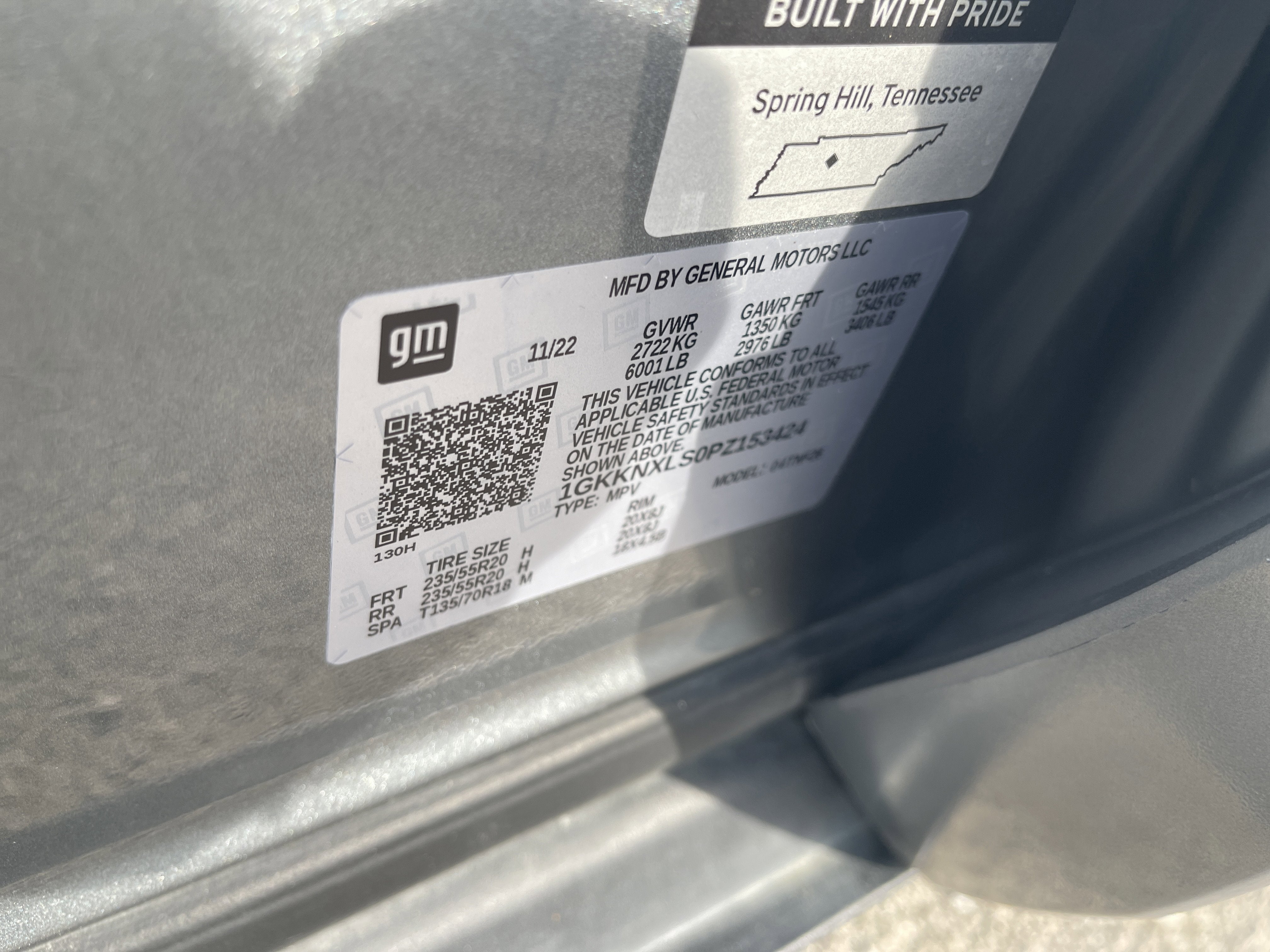 - Tires, P235/55R20 all-season, H-rated, blackwall