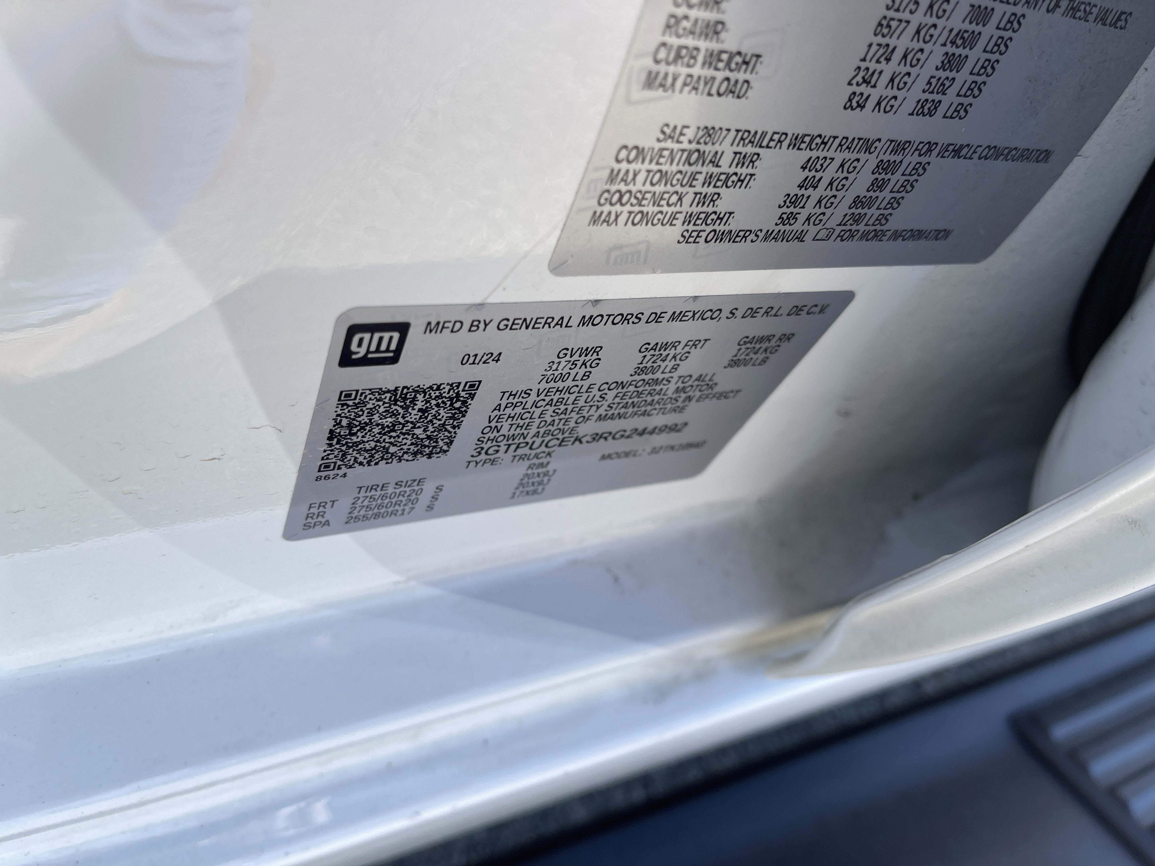 - Tires, 275/60R20 all-season, blackwall