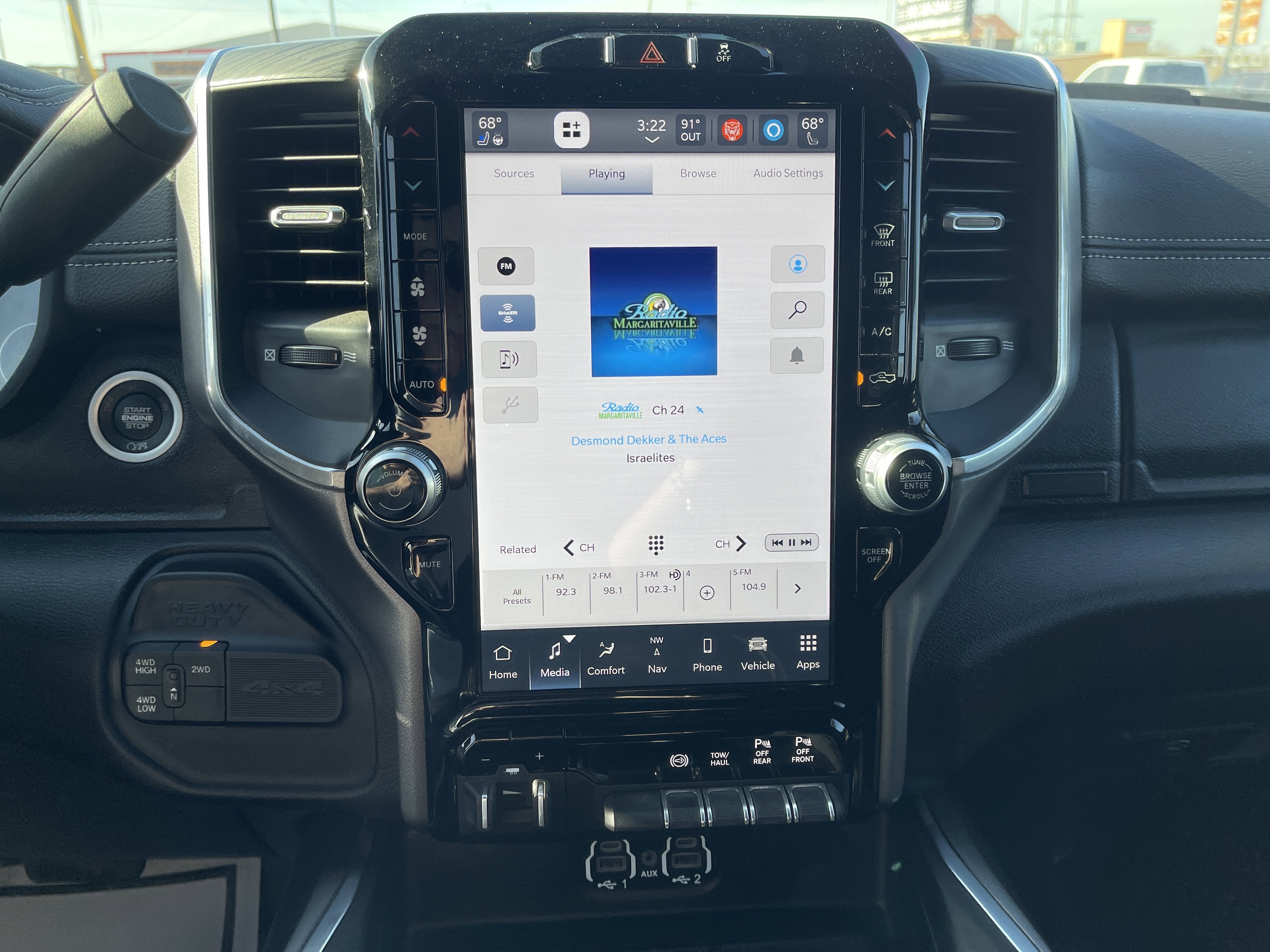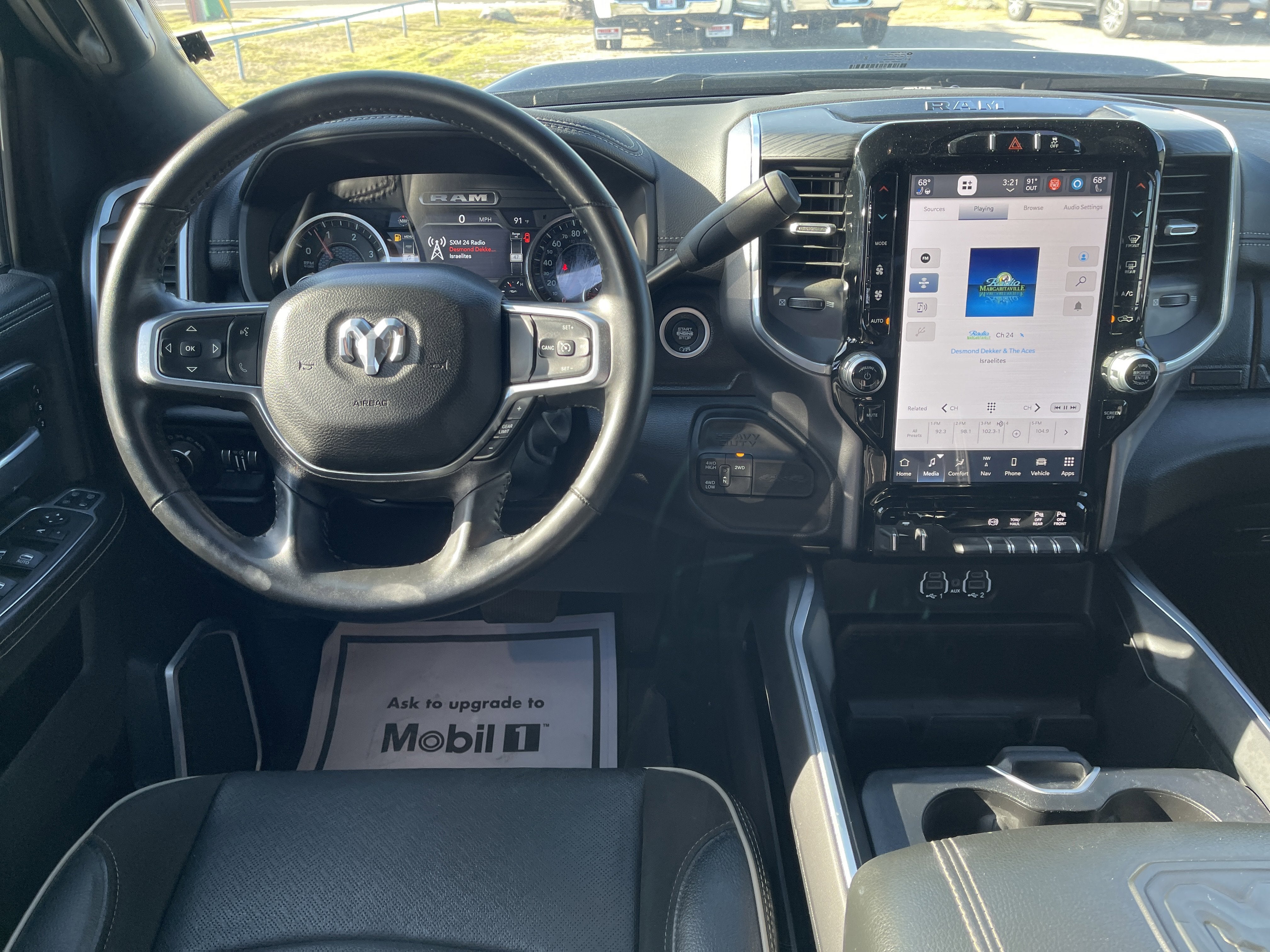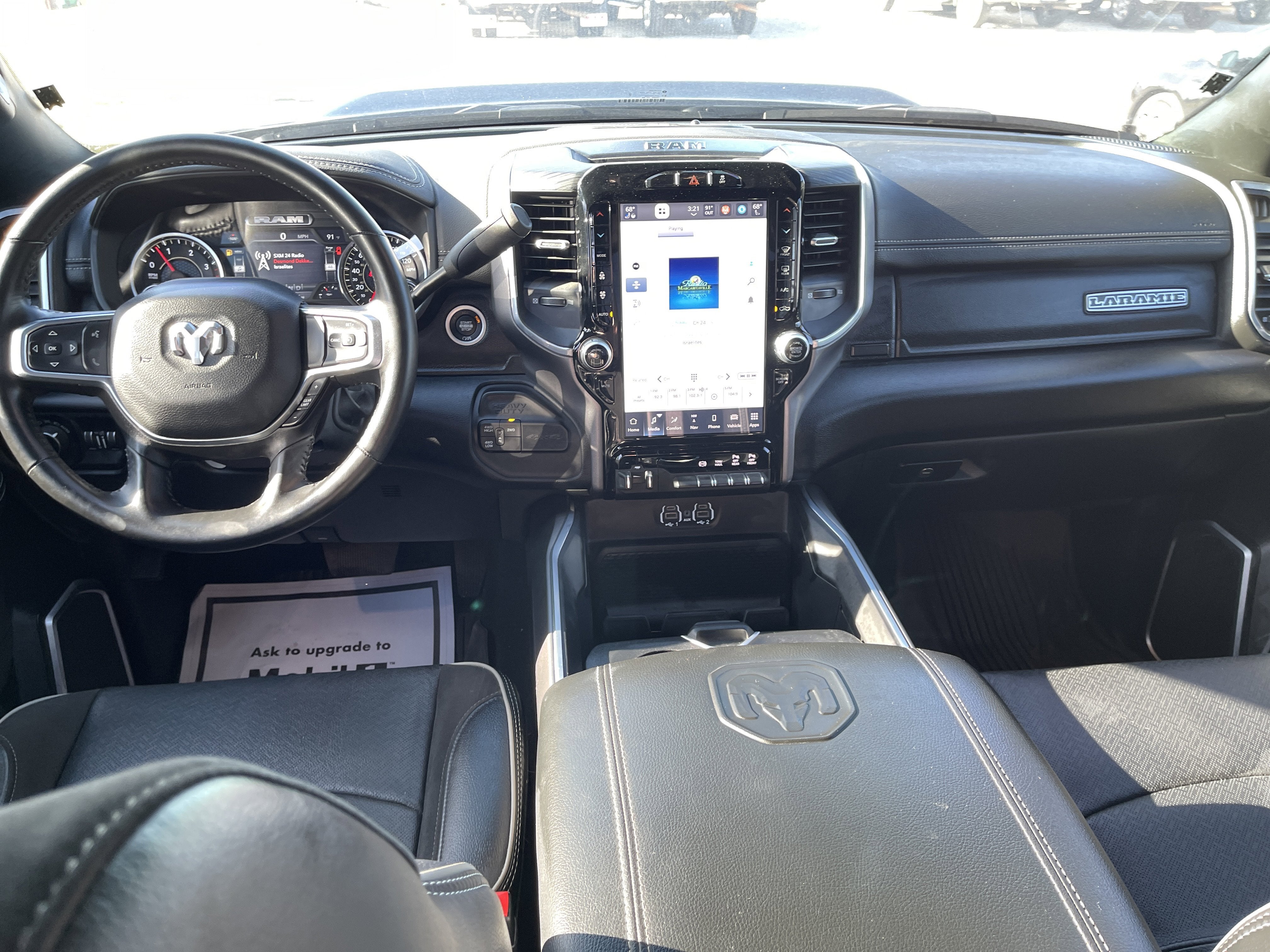 Equipped with Laramie Level 1 Equipment Group (12 Touchscreen Display, 18 x 8 Polished Aluminum Wheels, 2nd Row In Floor Storage Bins, 4G LTE Wi-Fi Hot Spot, Alexa Built-In, Apple CarPlay, Auto Adjust In Reverse Exterior Mirrors, Auto Dimming Exterior Passenger Mirror, Auto High Beam Headlamp Control, Auto Power-Folding Mirrors, Auto-Dimming Exterior Mirrors, Blind Spot & Cross Path Detection, Center Hub, Chrome Exterior Mirrors, Connected Travel & Traffic Services, Connectivity - US/Canada, Disassociated Touchscreen Display, Exterior Mirrors Courtesy Lamps, Exterior Mirrors w/Heating Element, Exterior Mirrors w/Memory, Exterior Mirrors w/Supplemental Signals, Foam Bottle Insert (Door Trim Panel), For Details Visit DriveUconnect.com, For More Info, Call 800-643-2112, Forward & Reverse Utility Lights, Front LED Fog Lamps, Global Telematics Box Module (TBM), Google Android Auto, GPS Antenna Input, GPS Navigation, HD Radio, Integrated Voice Command w/Bluetooth®, LED Reflector Headlamps, LED Tail Lamps, Mirror Running Lights, Off-Road Information Pages, ParkSense Front/Rear Park Assist System, Power Adjust Mirrors, Power Adjustable Pedals w/Memory, Power Heat Fold Memory Telescopic Mirrors, Power Telescoping Mirrors, Power-Adjustable Convex Aux Mirrors, Radio: Uconnect 5 Nav w/12.0 Display, Rain Sensitive Windshield Wipers, Rear Power Sliding Window, Rear Window Defroster, Remote Tailgate Release, Selectable Tire Fill Alert, SiriusXM Radio Service, SiriusXM w/360L, and Trailer Tow Pages), Quick Order Package 21H Laramie, Sport Appearance Package (20 x 8 Polished Aluminum Wheels, Black Interior Accents, Body Color Grille Surround, Sport Decal, and Sport Performance Hood), 10 Speakers, 115V Auxiliary Rear Power Outlet, 2 Way Rear Headrest Seat, 220 Amp Alternator, 3.73 Axle Ratio, 4 Way Front Headrests, 4-Wheel Disc Brakes, 50 Gallon Fuel Tank, 8.4 Touchscreen Display, ABS brakes, Active Noise Control System, Air Conditioning, Alloy wheels, AM/FM radio: SiriusXM with 360L, Apple CarPlay/Android Auto, Auto-dimming Rear-View mirror, Automatic temperature control, Brake assist, Bumpers: body-color, Chrome Flat Wheel-to-Wheel Side Steps, Compass, CTR Stop Lamp w/Cargo View Camera, Delay-off headlights, Driver door bin, Driver vanity mirror, Dual front impact airbags, Dual front side impact airbags, Electronic Stability Control, Electronically Controlled Throttle, Folding Flat Load Floor Storage, Front anti-roll bar, Front Center Armrest w/Storage, Front dual zone A/C, Front License Plate Bracket, Front reading lights, Front Seat Back Map Pockets, Fully automatic headlights, Garage door transmitter, Heated door mirrors, Heated Front Seats, Heated front seats, Heated Steering Wheel, Heated steering wheel, High Back Seats, Illuminated entry, Integrated Center Stack Radio, Leather steering wheel, Leather Trim 40/20/40 Bench Seat, Low tire pressure warning, MOPAR Front & Rear Rubber Floor Mats, MOPAR Spray In Bedliner, Navigation System, Occupant sensing airbag, Outside temperature display, Overhead airbag, Overhead console, Panic alarm, ParkView Rear Back-Up Camera, Passenger door bin,